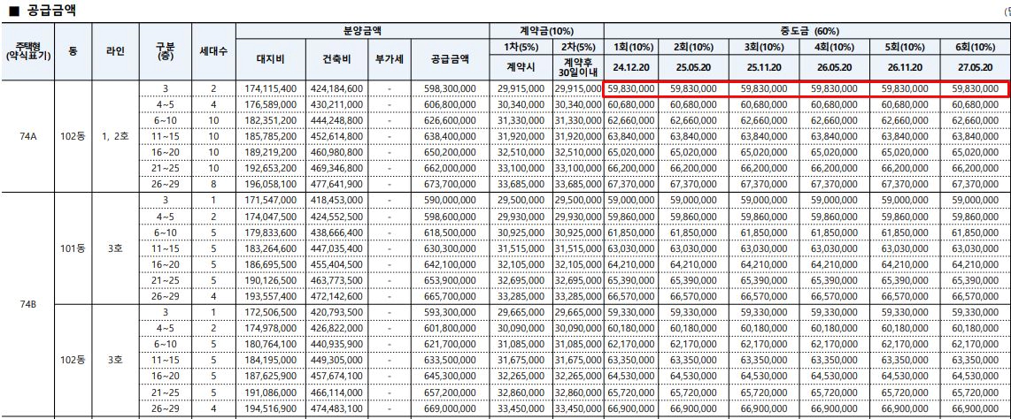 - 일반적으로 분양가의 10%씩 동일하게 실행되며, 정확한 금액은 각 입주자공고문에서 확인 가능합니다.
